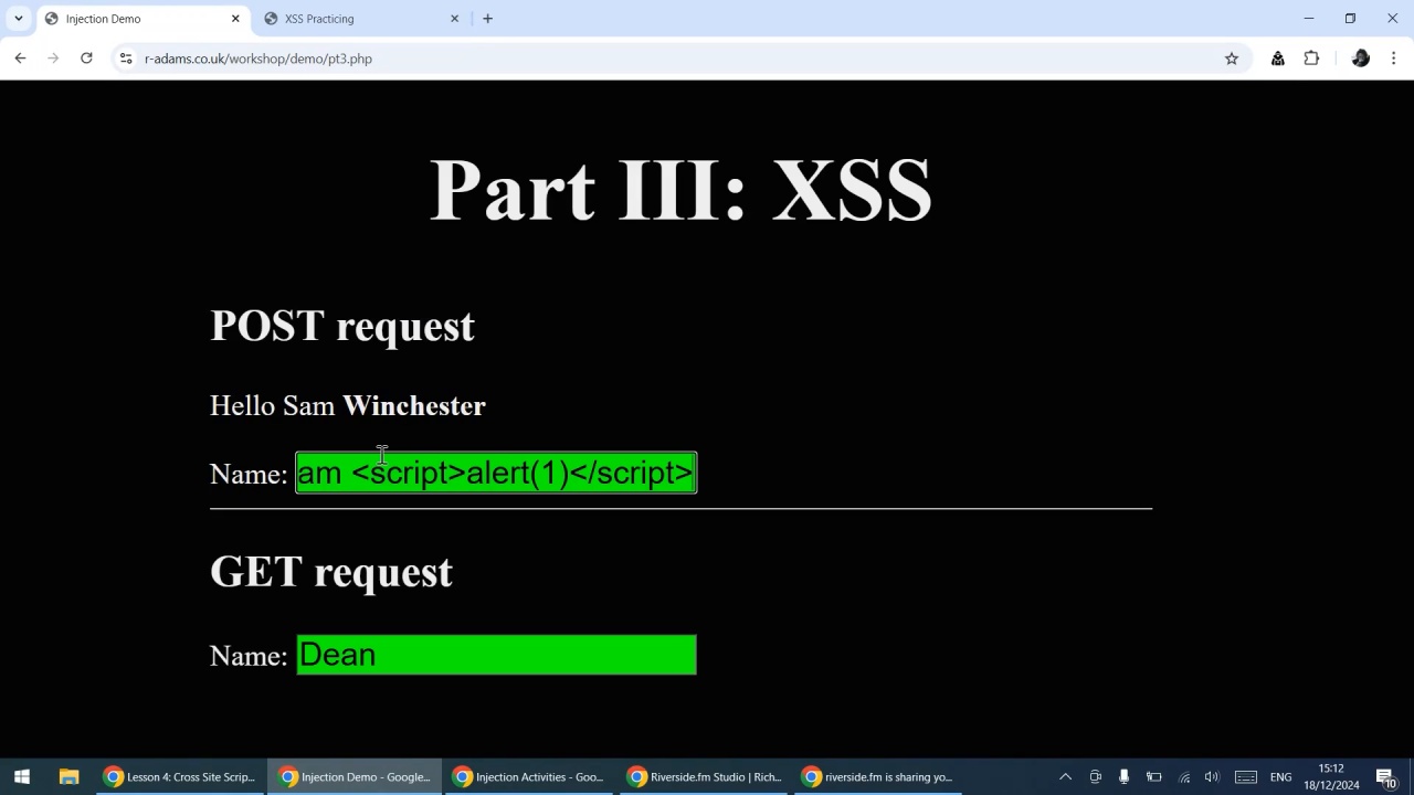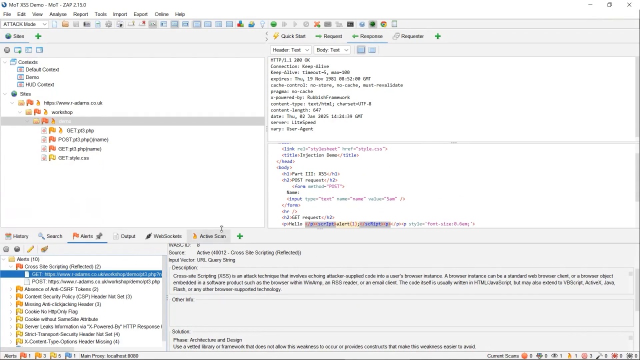 - Extend your test data to include simple XSS payloads