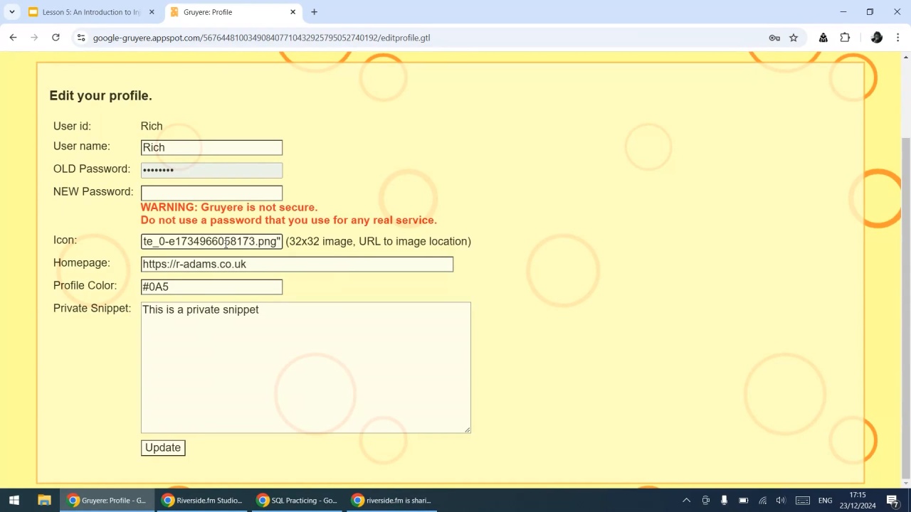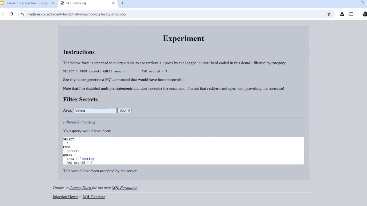 - Carry out SQL injection using security-focused test data in a web form